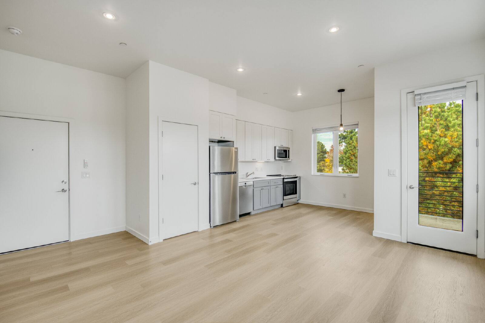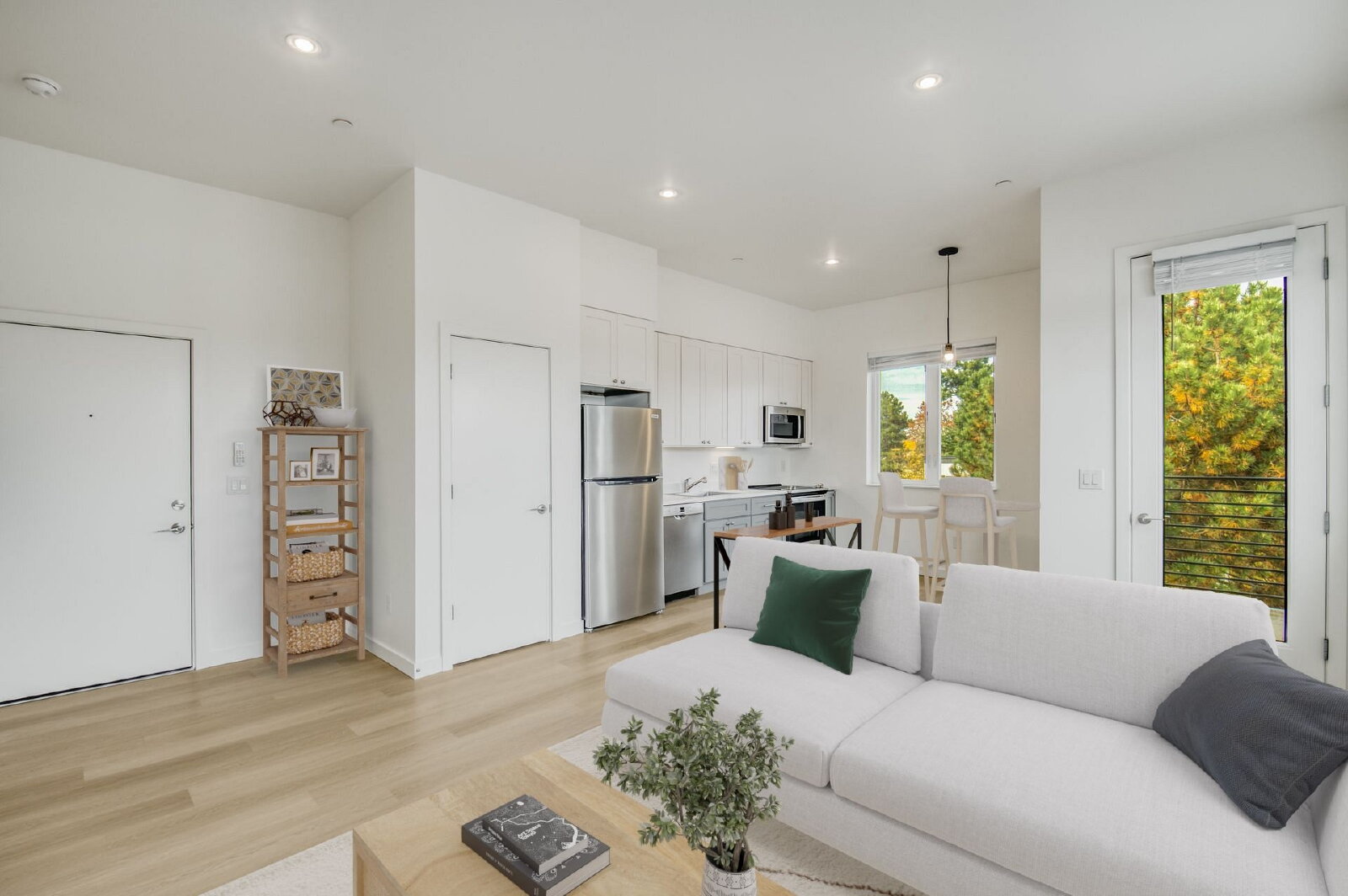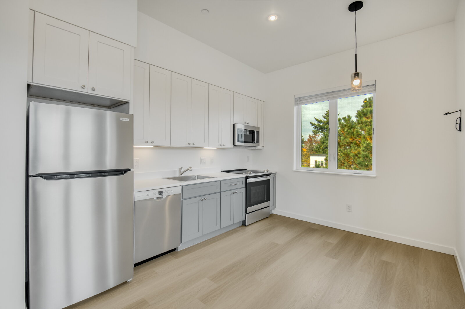 Modern Floors: Durable, White Oak-style plank flooring throughout (no carpet!).