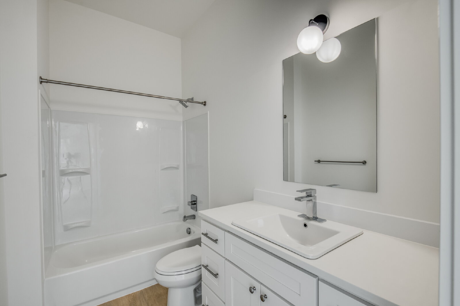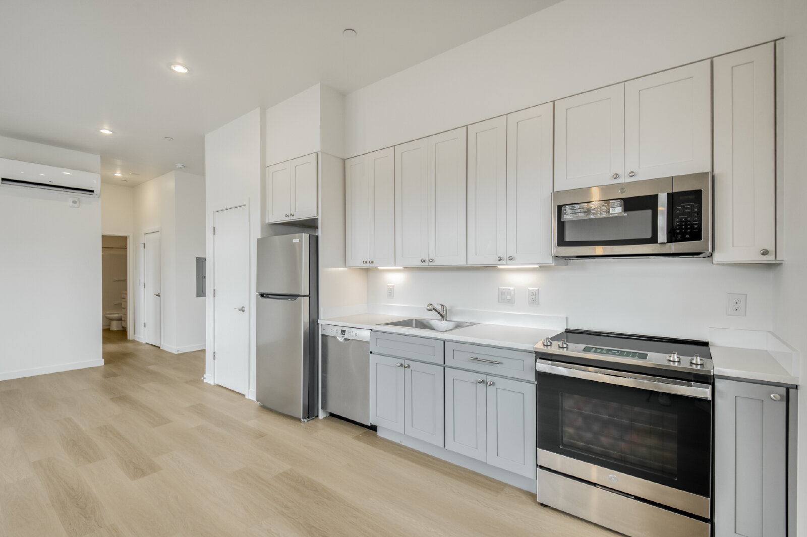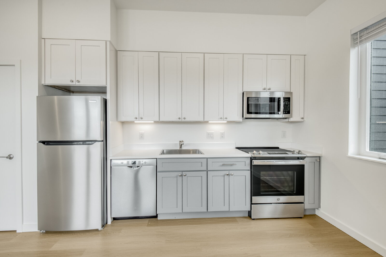 Modern Floors: Durable, White Oak-style plank flooring throughout (no carpet!).