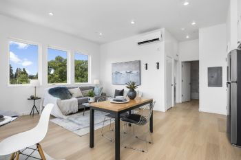 Spacious Pent-house Apartment with Top-Floor Views in the Overlook neighborhood of North Portland-1 Month Free Rent with 12 Month Lease - 1 Bed, 1 Bath / Private Balcony /10-ft High Ceilings / Expansive Natural light 8 Large (36 x 60) Windows / High-Efficiency Stainless Steel Appliances / LVP White Oak Flooring / Quartz Countertops / Modern Kitchen with Cabinets reaching the ceiling / W/D in-unit / High-Efficiency Heat Pumps delivering Heat/AC
