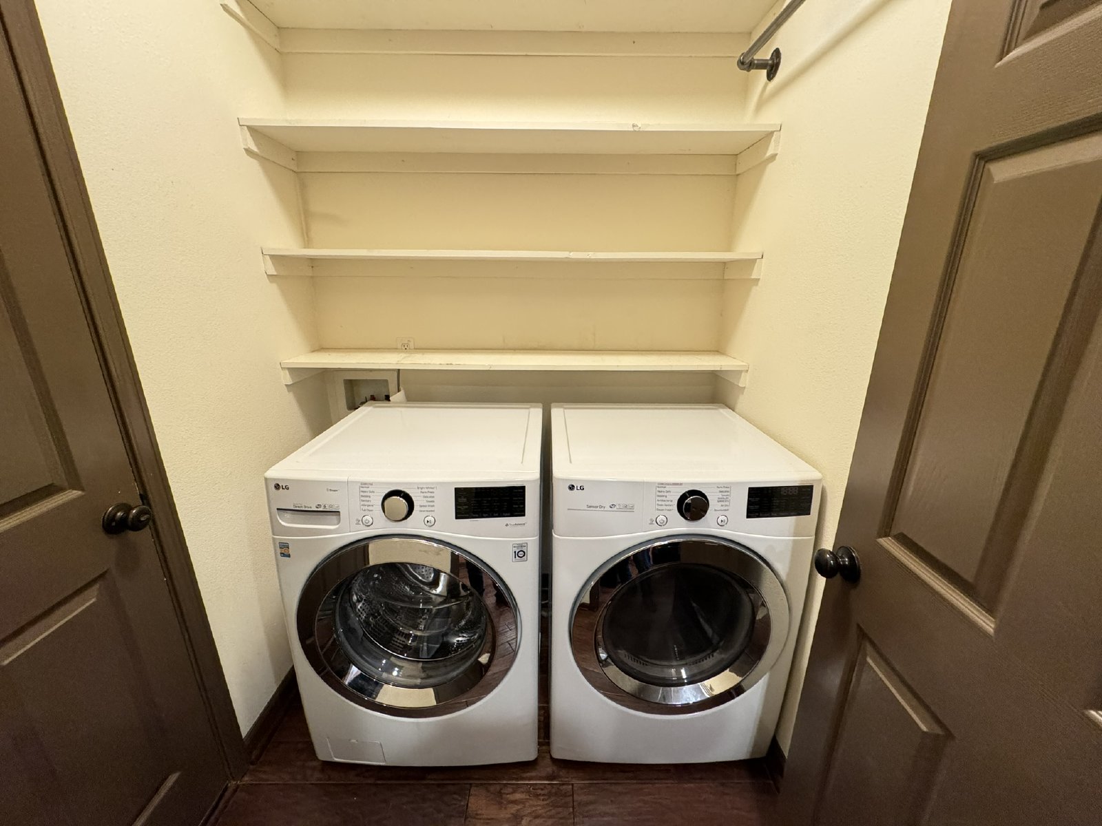 Beautiful Home with high end finishes, tall ceilings & neutral colors. 4 Bedroom and 2.5 bathrooms. Open area Kitchen with updated appliances and lots of cabinet space. Large Living room with wonderful fireplace, open floor plan. Primary Suite with walk in closet and double sink vanity. Spacious bedrooms. Central heat and A/C. Full Size Washer and Dryer. Fully fenced in back yard with covered patio area. Single car garage.